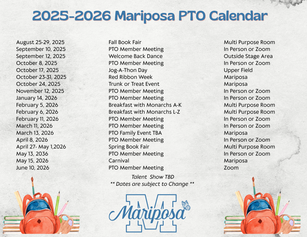 Mariposa PTO is made up of hard-working parents & teachers who pool their talents to provide practical support for our school.