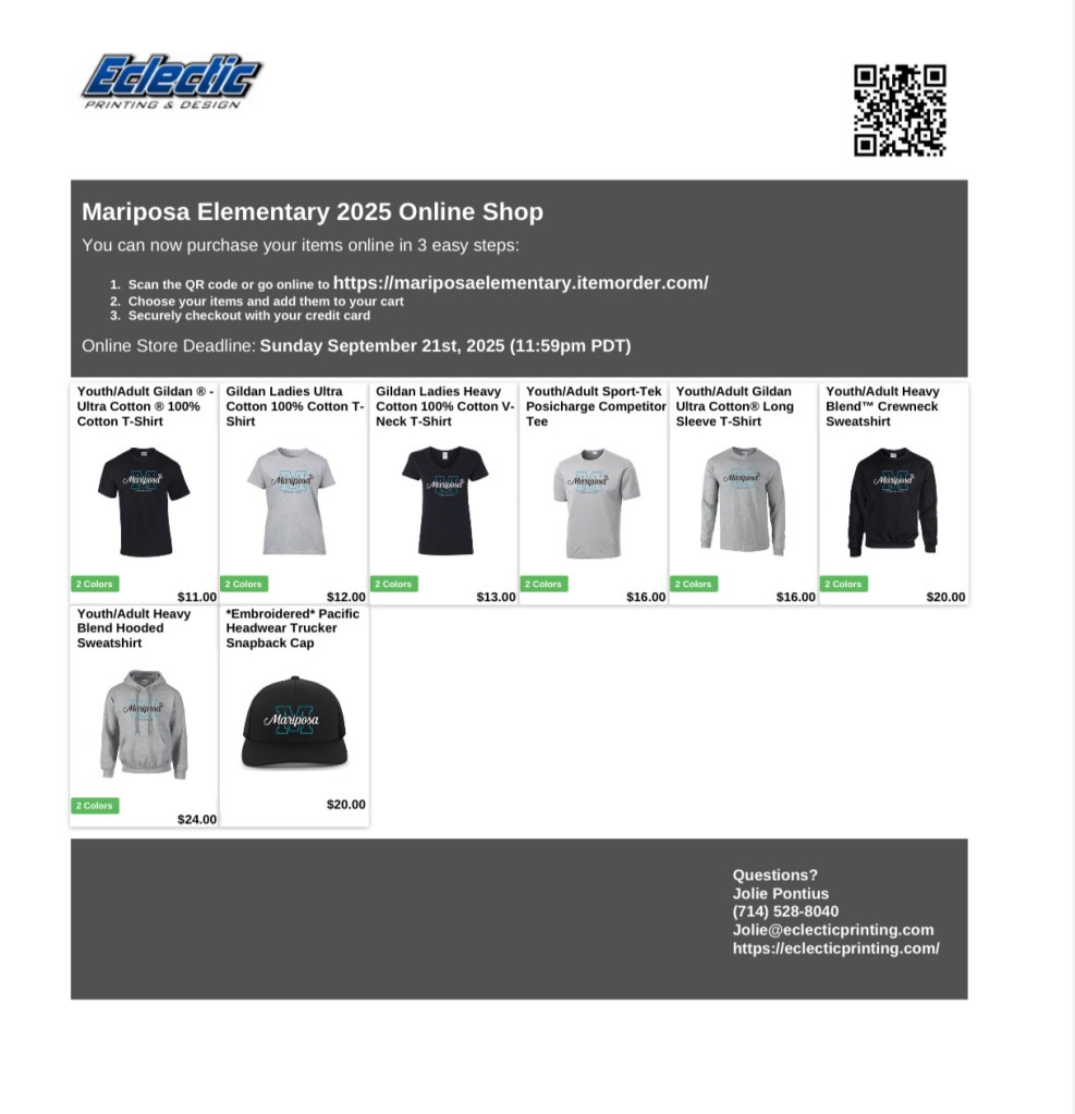 2025-2026 Mariposa Spirit Wear